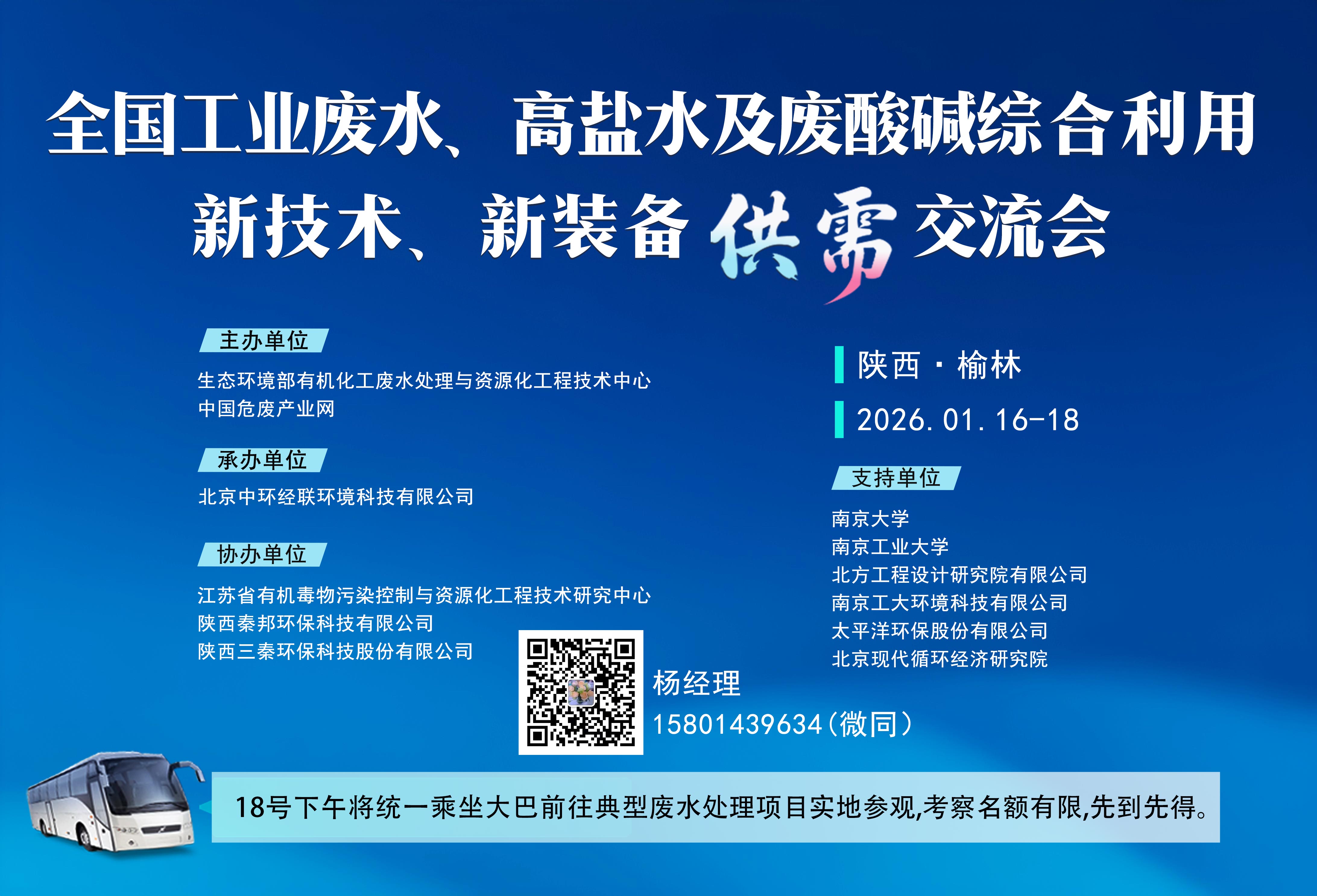 【1月·榆林】工業廢水、高鹽水及廢酸堿綜合利用新技術、新裝備供需交流會 重磅來襲!